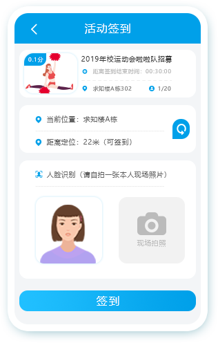 上传照片人脸识别匹配,地理位置限距定位签到